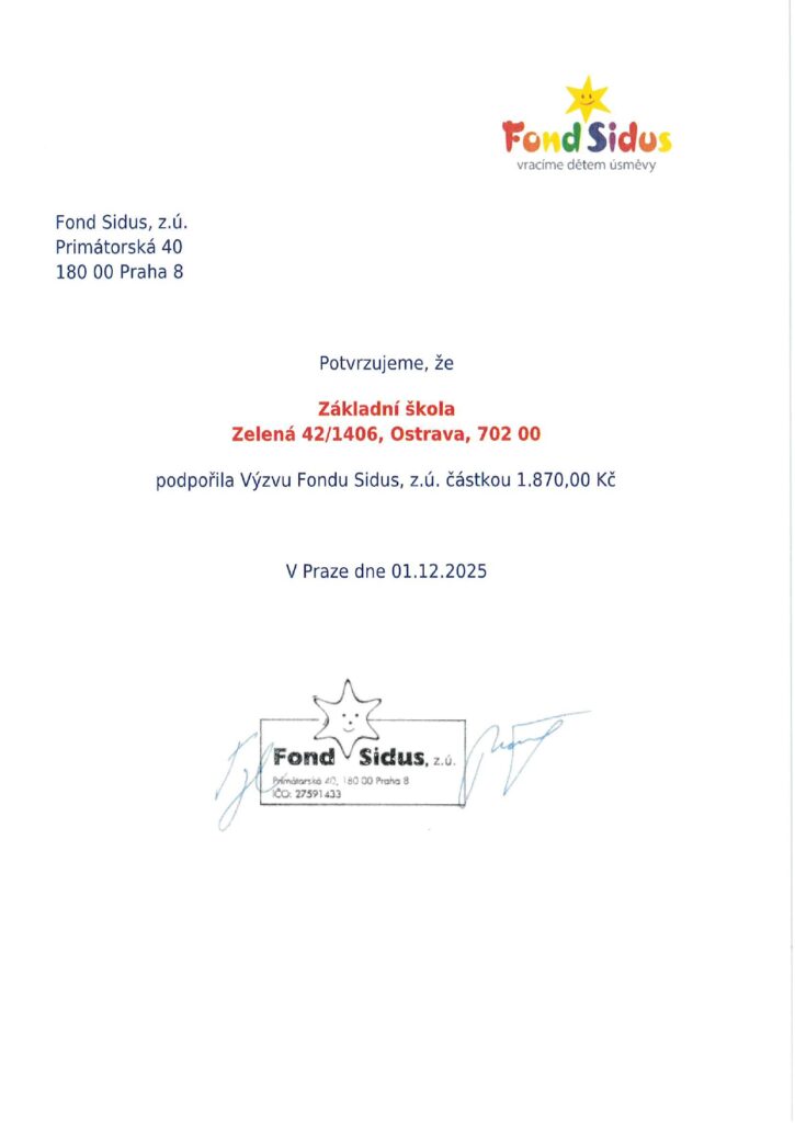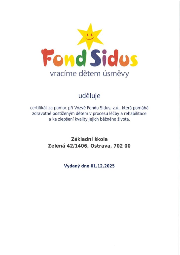 Jako každý rok jsme se na naší škole rozhodli podat pomocnou ruku zdravotně postiženým dětem, které procházejí náročnou léčbou a rehabilitací. Víme, že i drobná podpora může znamenat víc, než se na první pohled zdá – může přinést úlevu, radost a kousek „normálního“ dětského dne.