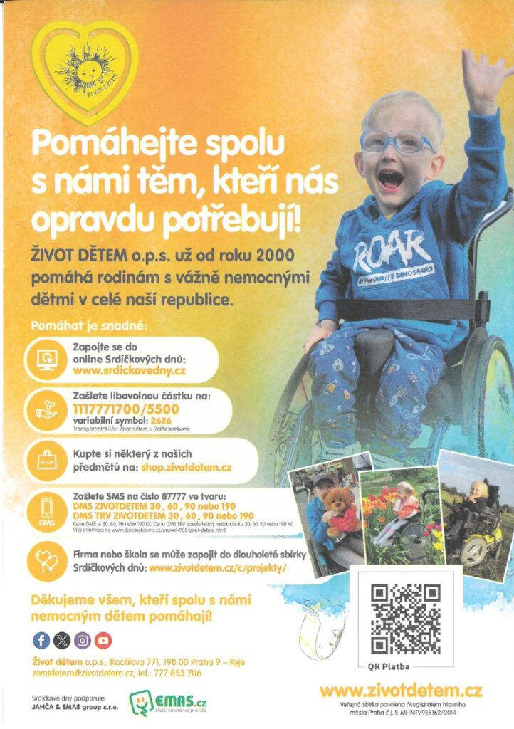 Do školy nám dorazila další charitativní sbírka – tentokrát ŽIVOT DĚTEM.